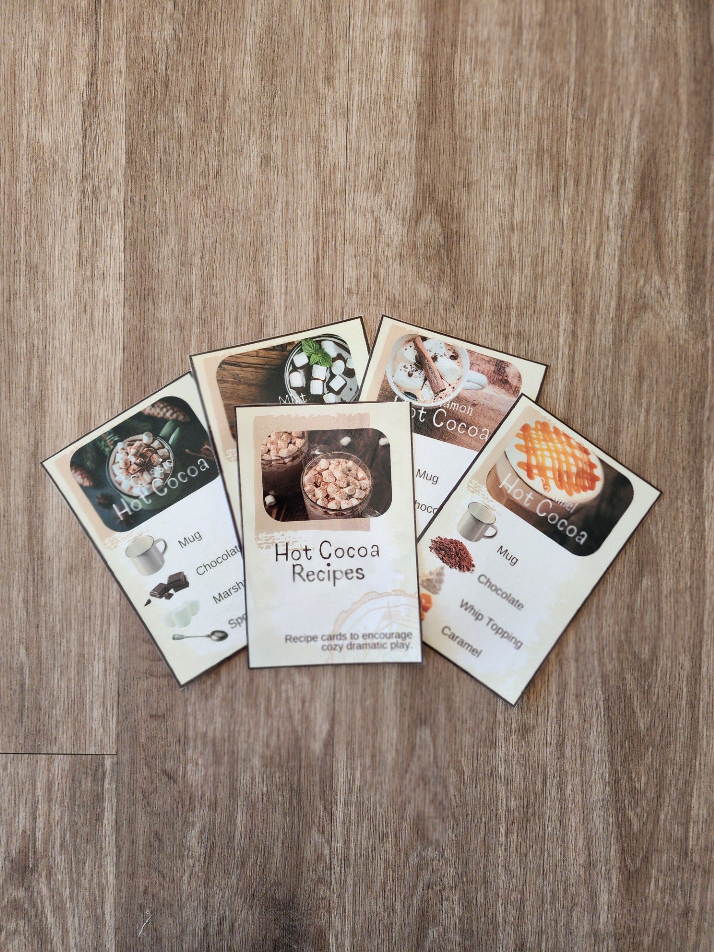 Take these realistic and cozy recipe cards and add them to your dramatic play area or out in a mud kitchen for hours of pretend play.