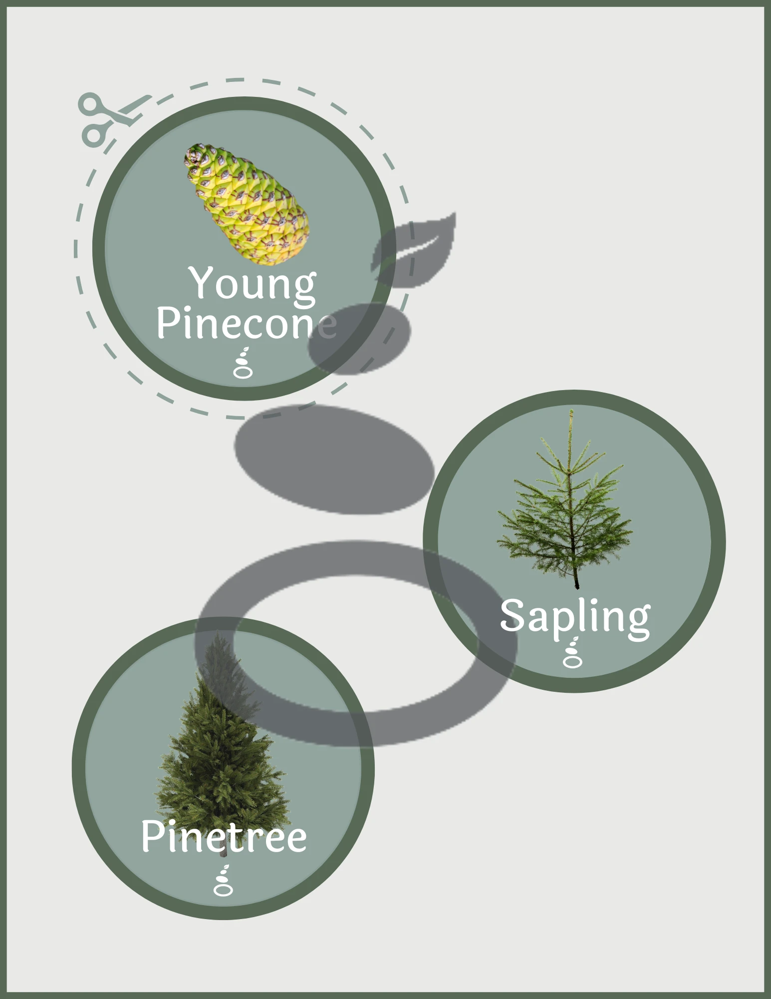 Included in this STEM inspired set is 6 wooden magnetic tiles of the life cycle of a pine, laminated real pine specimen magnets, and the life cycle visual card to guide sequence.
