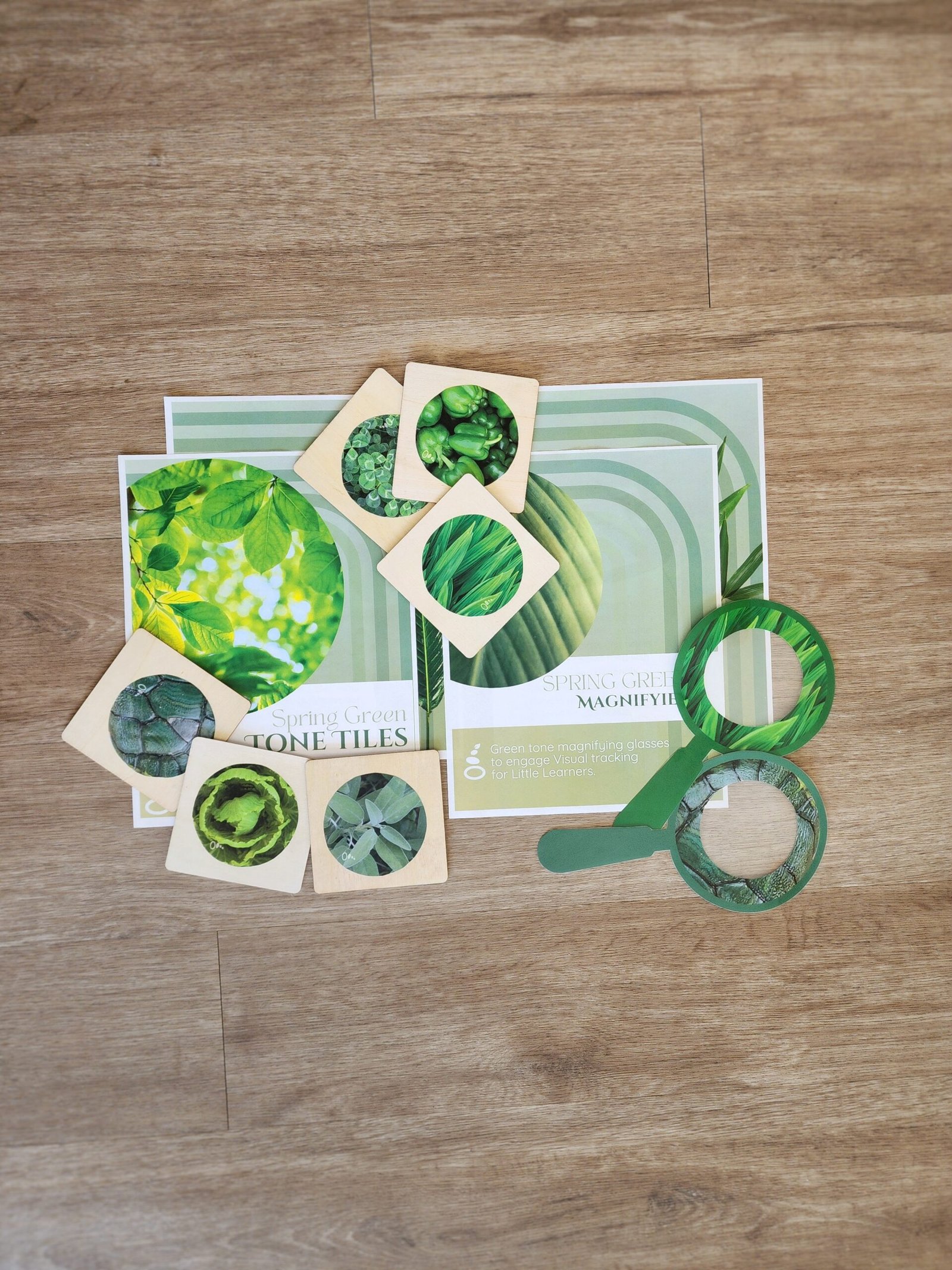 Bring the beauty of spring greens into your toddler classroom with this versatile set! This bundle includes the downloadable Spring Green Tiles, 6 pre-made tiles, and two coordinating spring green magnifiers – perfect for adding a fresh layer of exploration to your block area, sensory bin, literacy nook, or science station.