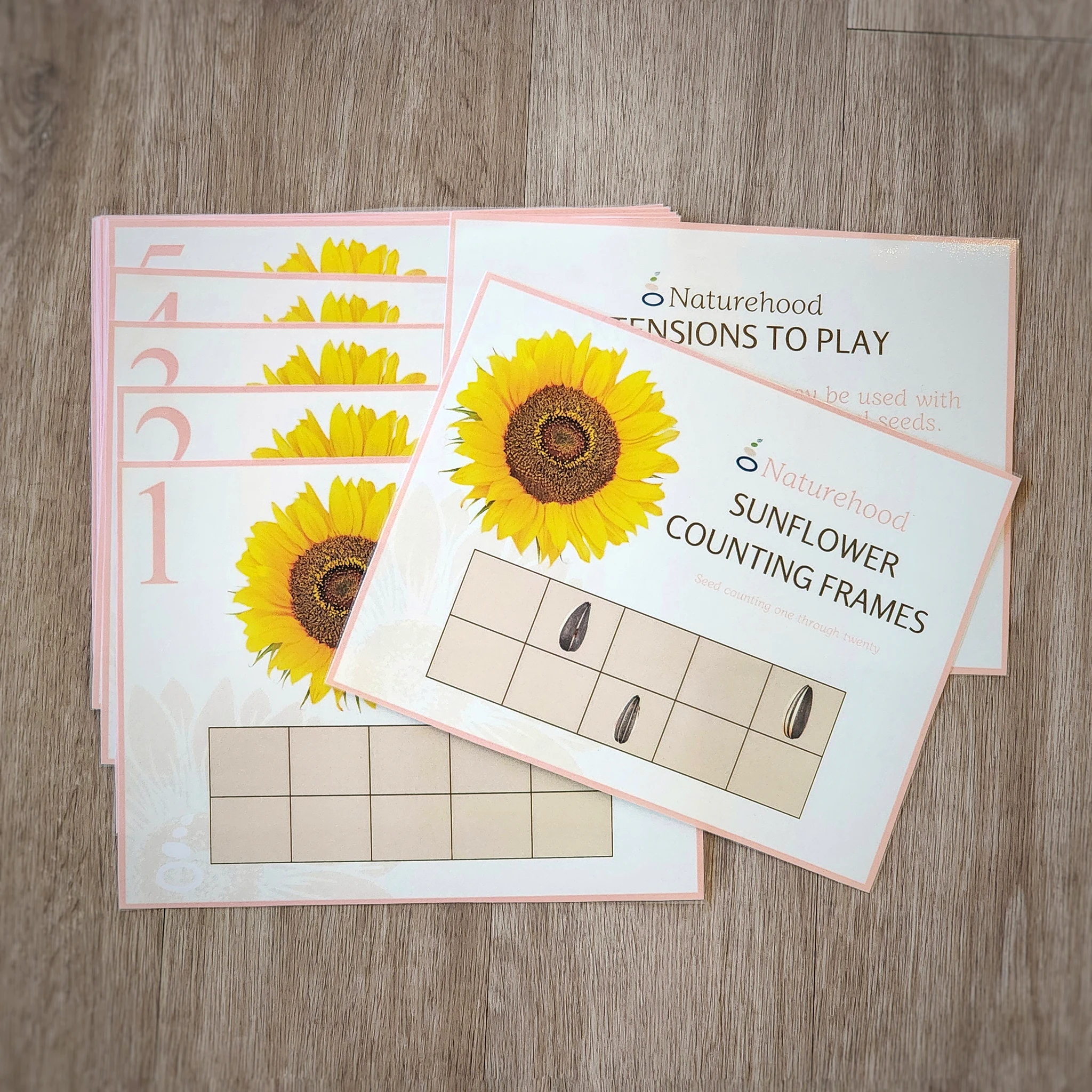 10-frame card using sunflower seeds, an easy and attainable resource to gather for counting with one to one correspondence and building those early math skills. Use dough on the frames for the seeds to stay in place or use dry erase markers after laminating.